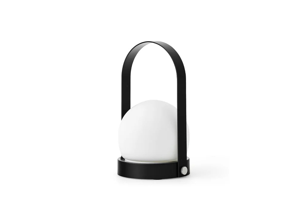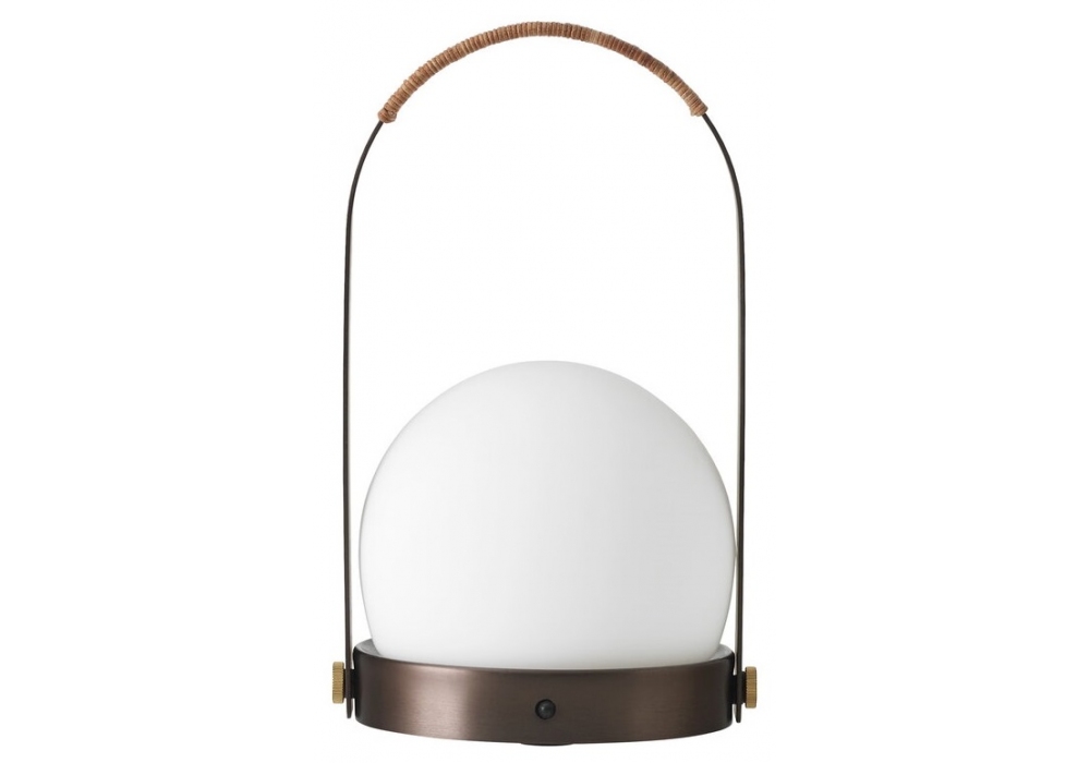 Carrie Leather designed by Norm Architects for Audo Copenhagen is a portable table lamp made of aluminum available in bronzed brass finish. Partial cover of the leather handle.