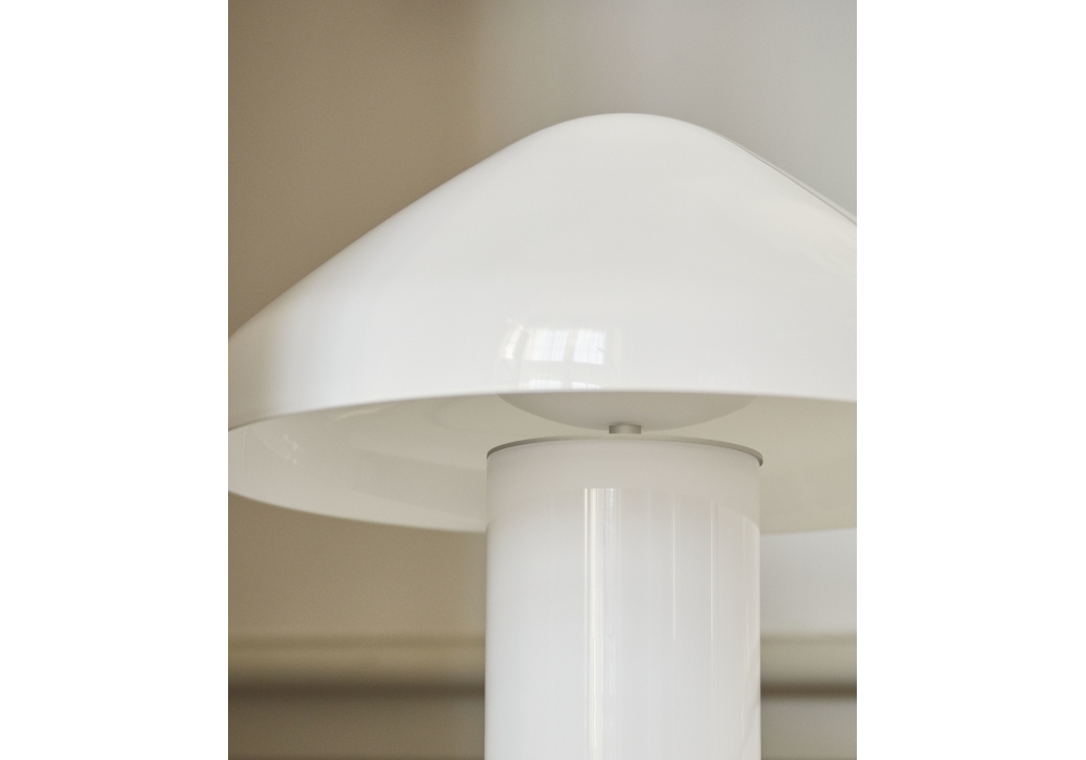 Pao Glass designed by Naoto Fukasawa for Hay is a table lamp with lampshade in hand-blown opalescent high gloss glass. Braided fabric cable with silicone insulation.