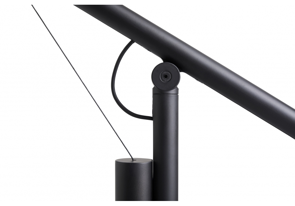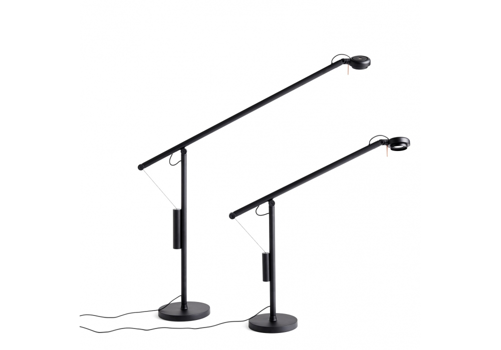 Fifty-Fifty designed by Sam Weller for Hay is a table lamp with arms in extruded aluminum with joints and diffuser in die-cast aluminium. Cast aluminum base with sand cast iron internal counterweight and powder coated steel base plate with foam protector. Black silicone cable. Available in different finishes.