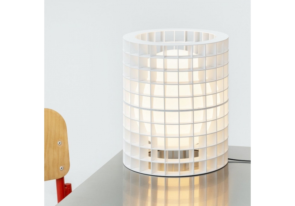 Matrix designed by Studio Os Δ OOS for Fontana Arte is a table lamp giving diffused dimmable light with painted metal structure and acid-etched blown glass sphere. Black power cord, switch and plug. Available in different dimensions and finishes.