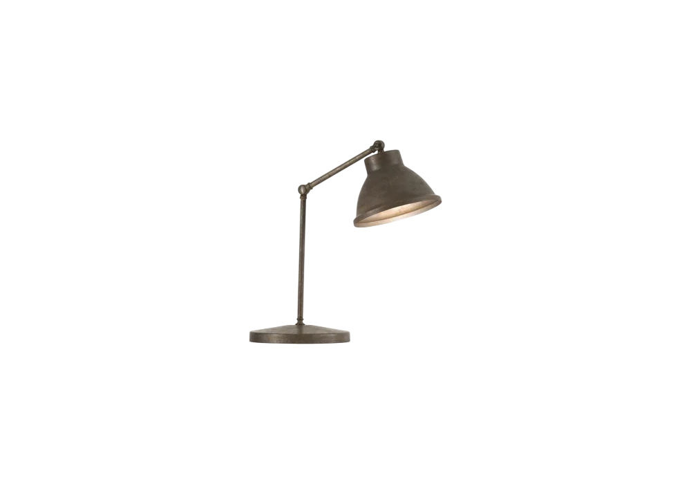Loft designed by Dt Studio for Il Fanale is a table lamp with circular base and vertical structure in combination of iron and brass. The upper arm is articulated to better direct the light flow. The lampshade has a rounded, adjustable shape and shields an LED light source.