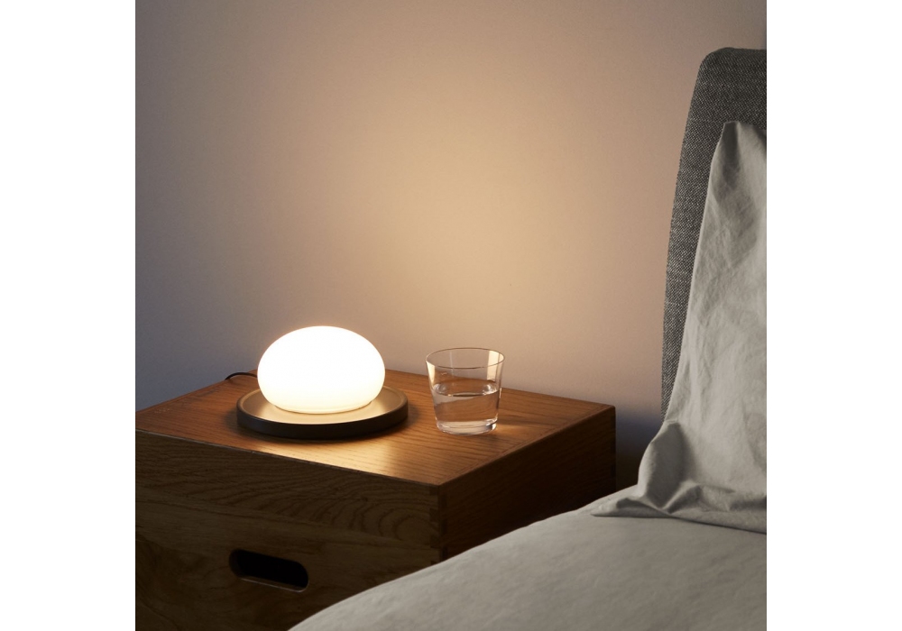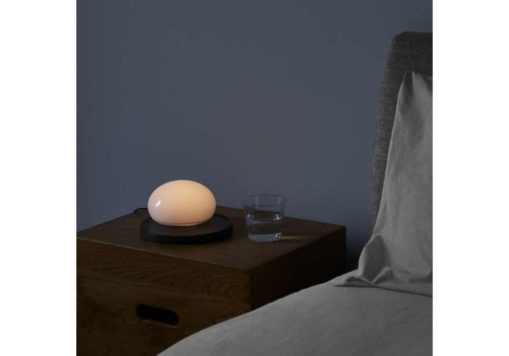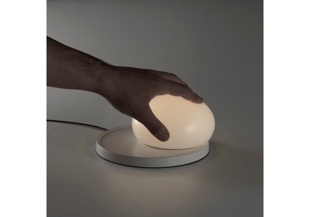 Bolita designed by Kaschkasch for Marset is a table lamp with steel base and opal blown glass diffuser. The base is available in different finishes.