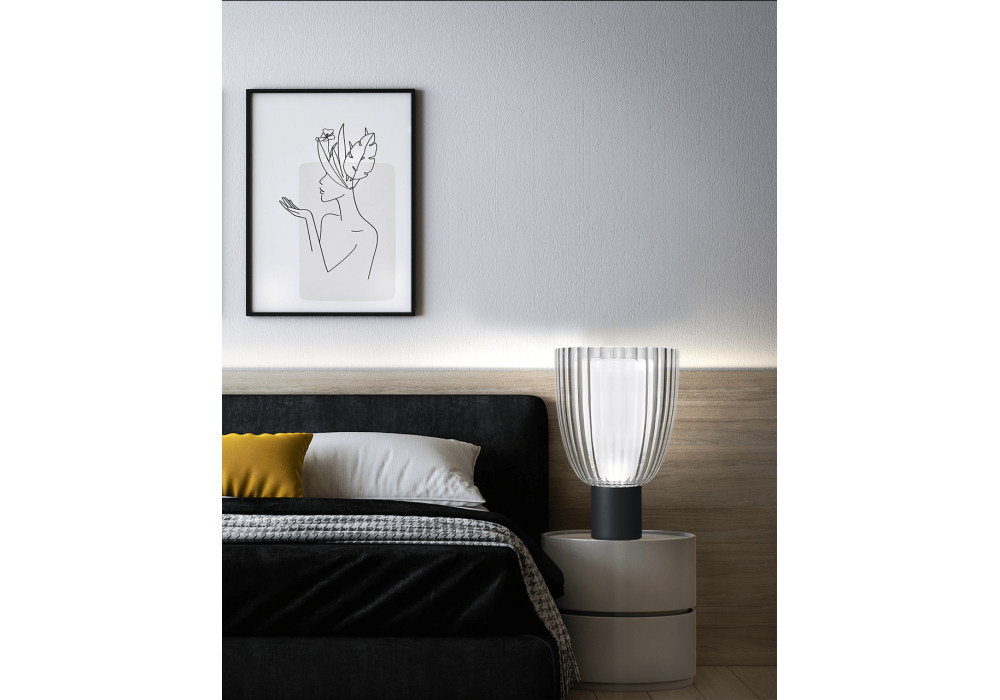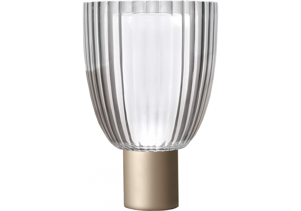 Universale designed by Virginia Cei for Italamp is a table lamp in carved crystal with internal diffuser in blown and satin glass. Metal base in matt champagne, matt bronze or matt black finish.