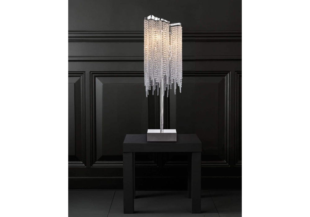 Victoria designed by William Brand for Brand Van Egmond is a table lamp made with metal structure and crystal pendants. Available in different finishes.