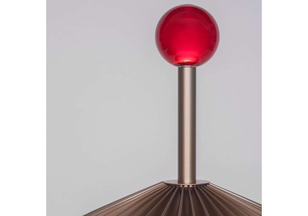Etoile designed by Daniela Puppa for Firmamento Milano is a table lamp with indirect light and rechargeable batteries. Painted aluminum structure and blown glass knob. Available in different finishes.