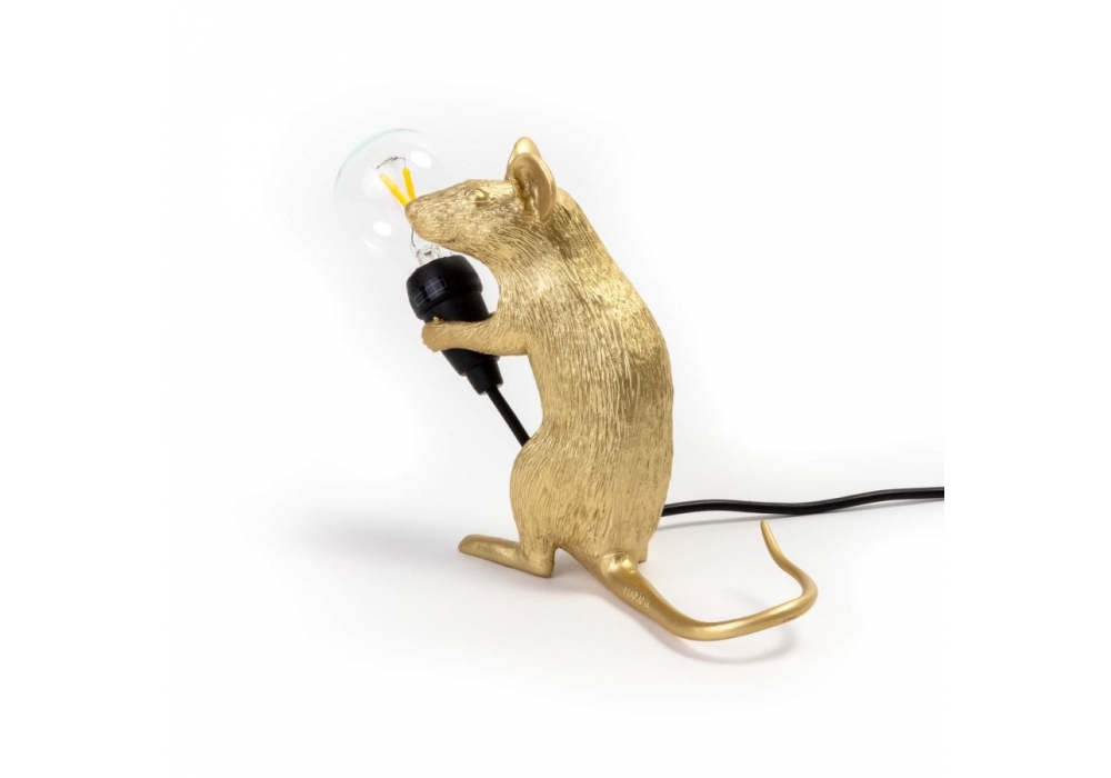 Mouse Gold designed by Marcantonio for Seletti is a gold resin lamp with LED light source powered by a USB cable. Mouse Gold is available in different sizes.