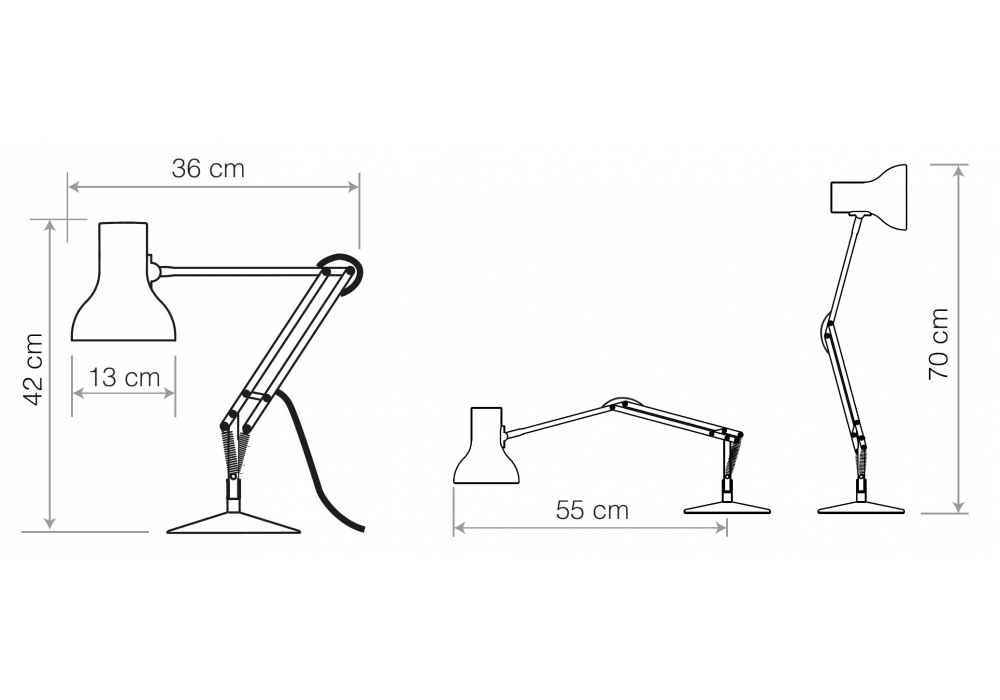 Type 75 Desk "Paul Smith Editions" designed by Sir Kenneth Grange for Anglepoise is a table lamp with aluminum shade and arms, black nickel plated fittings and cast iron base with aluminum cover. Available in different finishes and sizes.
