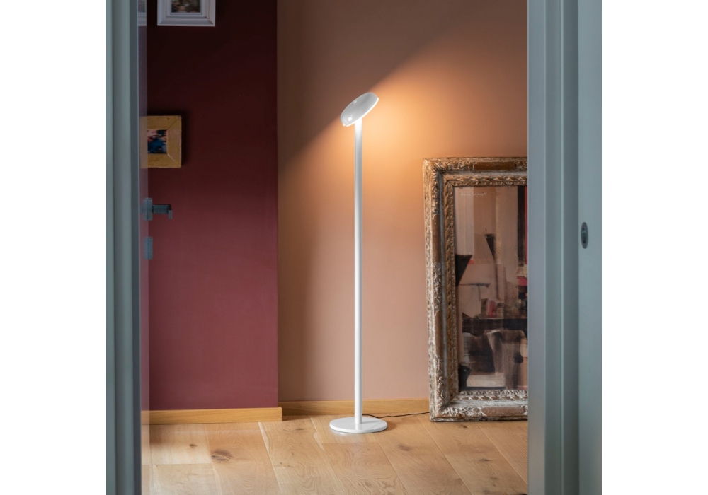 Cabriolette designed by Studio Natural for Martinelli Luce is a floor lamp with a circular base entirely structured in painted aluminium. The diffuser is articulated with vertical movement and shields an LED light source. Cabriolette is available in different finishes.