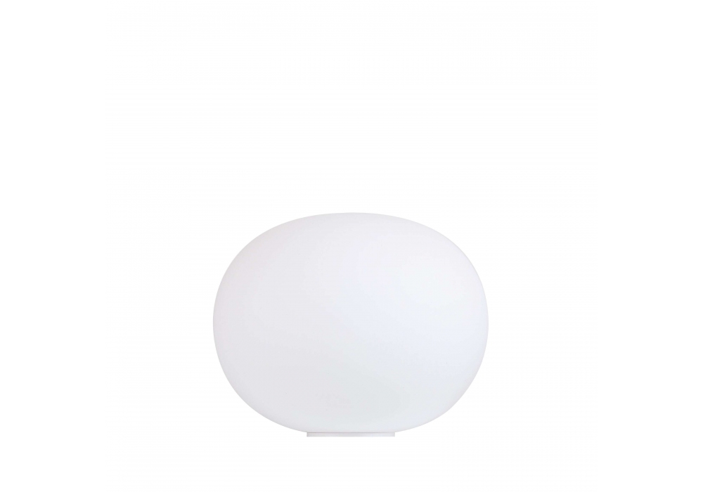 Glo-Ball Basic designed by Jasper Morrison for Flos is a table lamp with diffused light. Diffuser composed of a mouth-blown, cased opaline glass with an external acid-etched finish and a threaded ring nut in die-cast aluminum alloy with an "alodine" plating finish. Base composed of an injection-molded polyamide element reinforced with 30% fiberglass and diffuser support in die-cast aluminum alloy, painted in liquid gray. The cable features an electronic dimmer that allows for the dialed regulation of light intensity. Bulb not included.