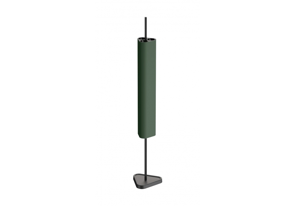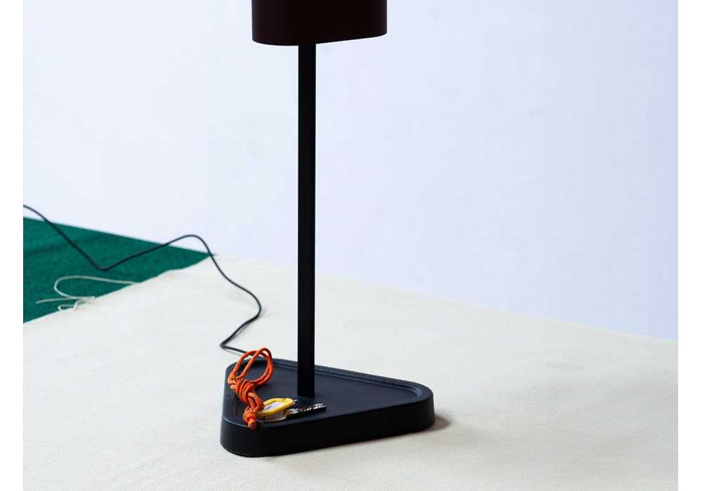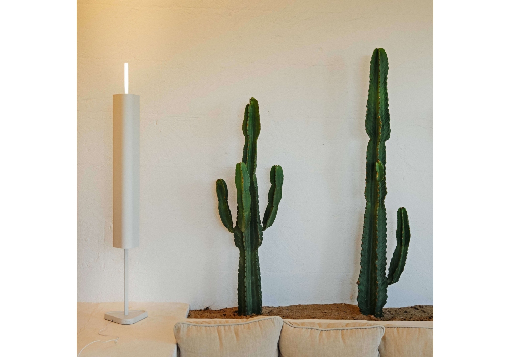 Emi designed by Erwan Bouroullec for Flos is a table lamp with a triangular base and vertical stem in aluminum. The lampshade is made of plastic with an optical lens diffuser and a dimmable LED light source. Independent control of the Up&Down lighting through capacitive Touch Dimming sensors positioned in the upper part of the central stem. Dimmer and light source included.