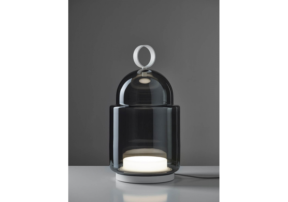 Dome designed by LCM Marin design studio for Brokis is a table lamp made of glass with a glossy finish available in a smooth or decorated version. The body is in powder-coated metal or brushed in various finishes.