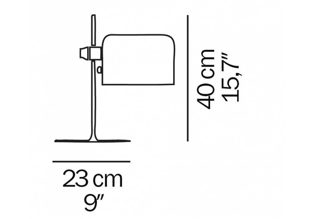 Coupè designed by Joe Colombo for Oluce is a table lamp with circular base in painted metal and vertical rod in chromed tubular metal. The diffuser is adjustable and made of fire-painted aluminium. Coupè is available in different finishes.