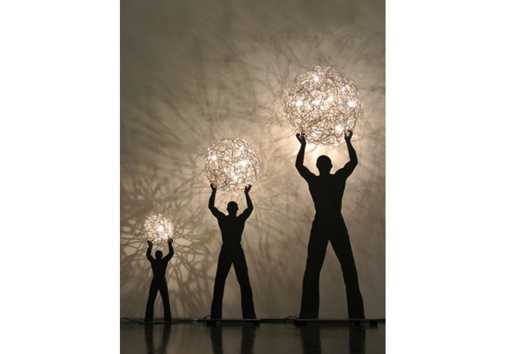 Uomo della Luce S is a floor lamp designed by Enzo Catellani for Catellani & Smith. It is part of the collection Fil De Fer. This lamp is made of natural aluminium wire that has been expertly sculpted and intertwined, waxed rough iron structure, lit up from within by micro bulbs.