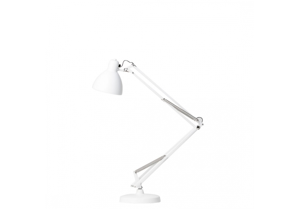 Naska LED produced and designed by FontanaArte is a table lamp, with adjustable metal arms structure available in four colors: chrome, black, white or gold and two versions with circular or clamp base. The diffuser is made of aluminum, and adopts a dimmable LED light source toch (included).