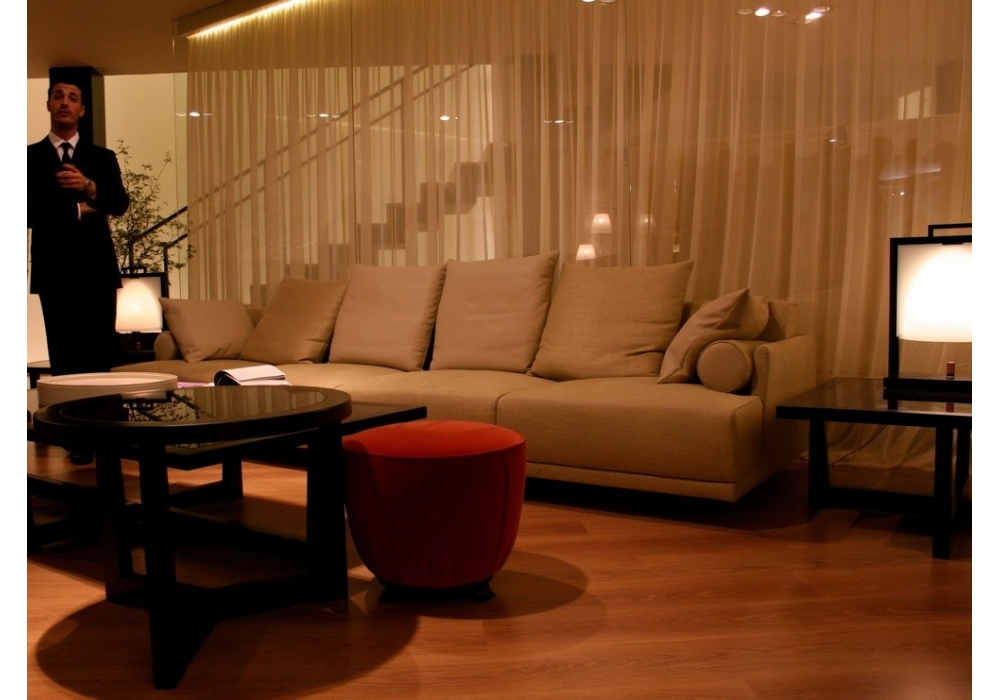 Nao is a table lamp designed by Chi Wing Lo for Giorgetti. Table lamp with the structure in solid polished maple and varnished metal. The lampshade is in press moulded, oven glazed glass.. A knob in solid pau ferro is located at the centre of the base and it is used for changing light effect. The lamp is opaline halogen (220V-150W-E27).