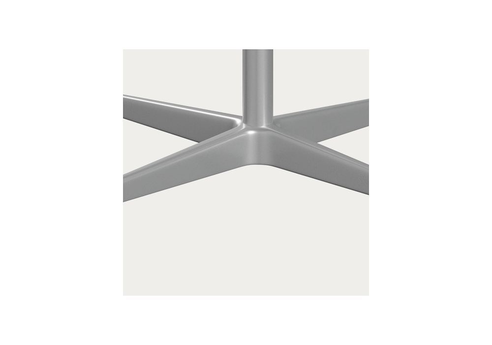 Supercircular conçue par Piet Hein, Bruno Mathsson, Arne Jacobsen pour Fritz Hansen est une table avec base à quatre branches en aluminium poli satiné ou en aluminium thermolaqué. Plateau en bois stratifié ou plaqué. Disponible en différentes finitions et dimensions.