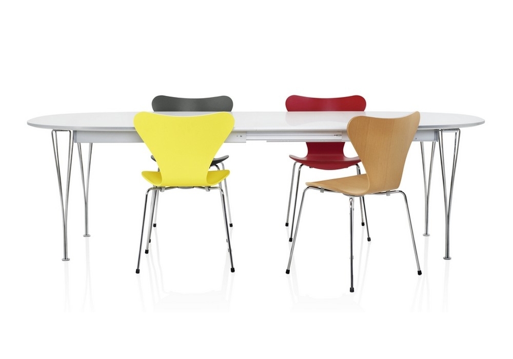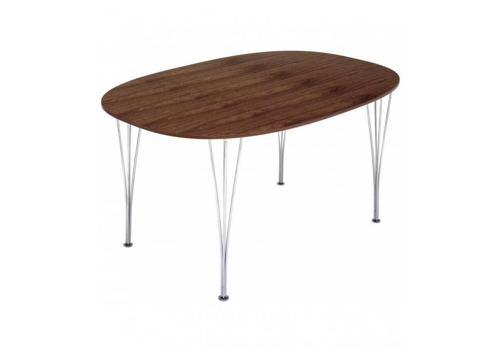 Superellipse designed by Piet Hein and Bruno Mathsson for Fritz Hansen is a table made with laminate or wooden top and legs in chromed or powder coated steel. Available in different finishes and dimensions.