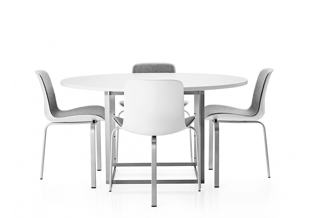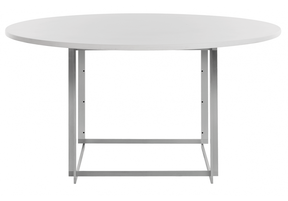 PK58 designed by Poul Kjærholm for Fritz Hansen is a table made with top in white polyester and base in brushed satin anodized aluminum.