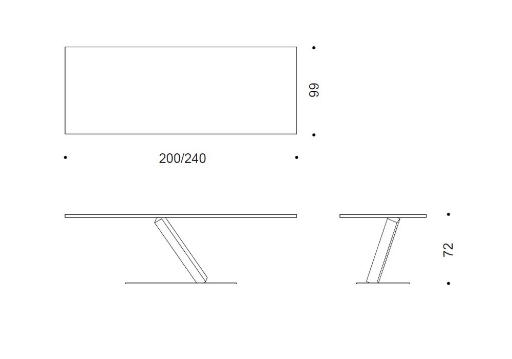 | Dimensions | • 200 x 99 x H 72 cm; • 240 x 99 x H 72 cm |