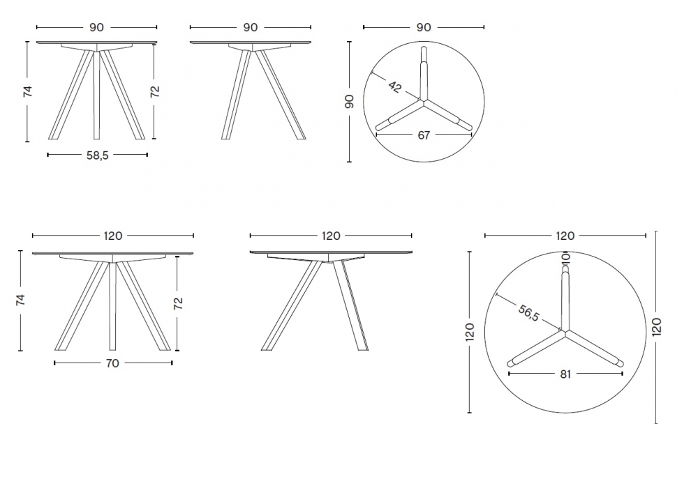 | Dimensions | Ø 90 x H 74 cm; Ø 120 x H 74 cm. |
