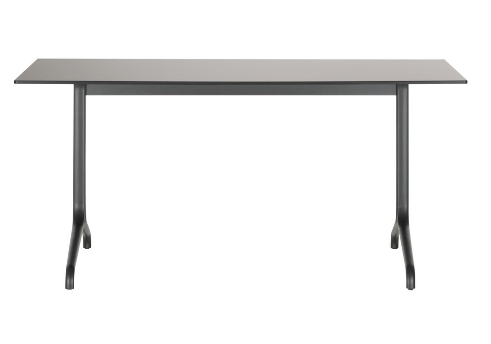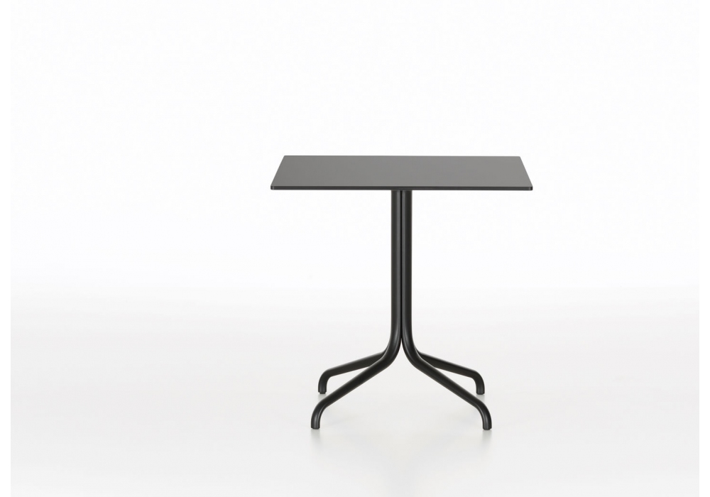 Belleville Table designed by Ronan & Erwan Bouroullec for Vitra is a tables collection. The Belleville Tables reveal a similar capacity for transformation, featuring table tops in laminate, wood or stone, along with elegantly arched legs of cast aluminium. The Belleville Tables are modelled on the typology of the classic bistro table. The slender legs flow in a continuous sweeping line from their splayed bottom along the central column to the table top. Forming star- or t-shaped bases, they can be arranged as graceful dining tables, single bistro tables or long cafeteria tables.