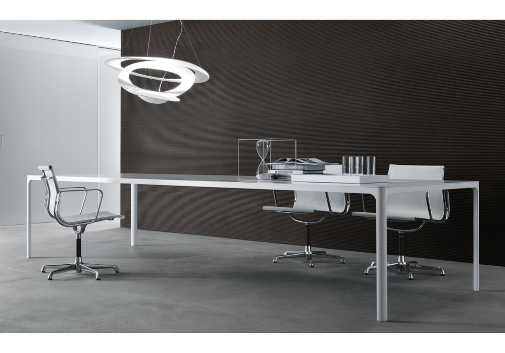 Flat designed by Giuseppe Bavuso for Rimadesio is a table system in continual evolution, with a wide variety of sizes appropriate for diverse settings and functions, from home to professional environments. Flat is a design that best emphasizes the quality of the basic Rimadesio materials, aluminium and glass, through a precise design that maintains a functional aesthetic using light and thin proportions. An option whose formal simplicity can be perfectly integrated into all the systems in the company’s collection.
