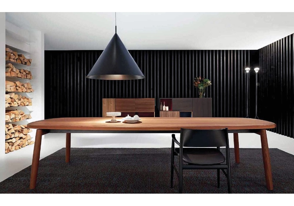 Galileo is a square table designed by Piero Lissoni for Porro. Galileo is the new Porro wooden table with organic contours and natural hues. With a solid wood oval top, one-of-a-kind resilience, supported by 4 significantly thick tapered legs, Galileo selects from the new woods the heat treated ash, known for its soft, wavy grains that emerge from a dark and intense base.