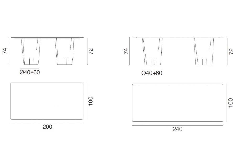 | Base | 2 x Ø 40-60 cm x H 72 cm |