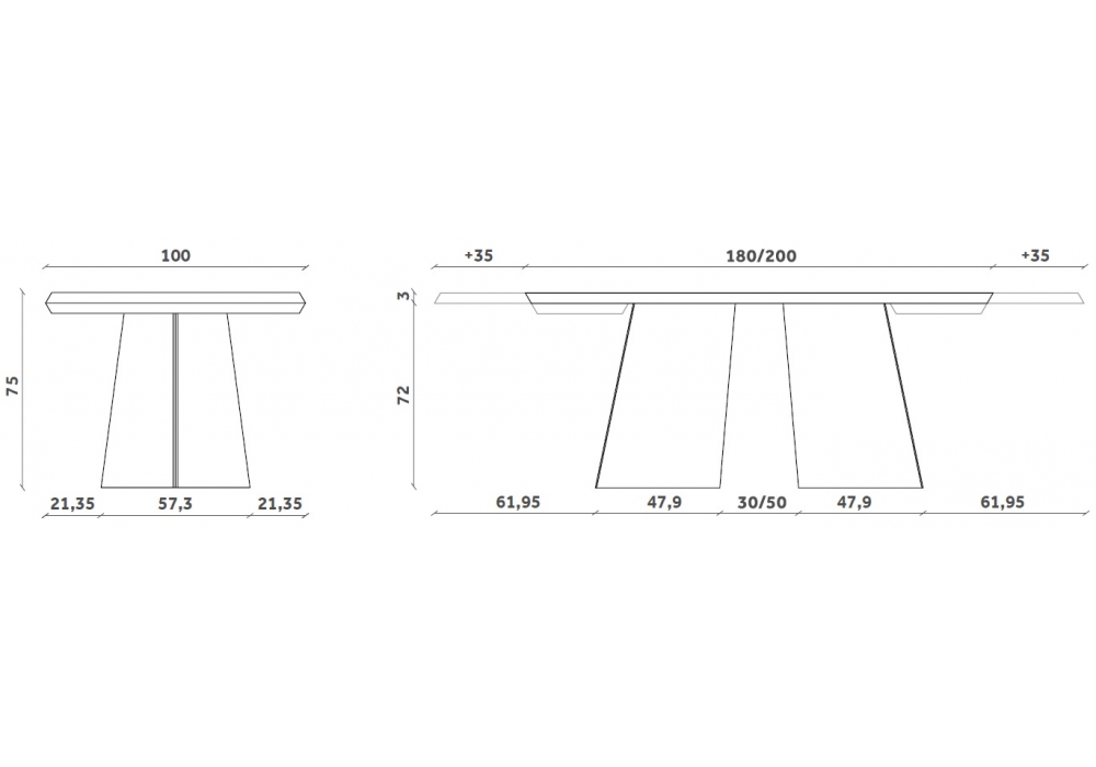 | Dimensions | • 200 x 100 x H 75 cm; • 240 x 100 x H 75 cm; • 300 x 110 x H 75 cm; • 180-215-250 x 100 x H 75 cm; • 200-235-270 x 100 x H 75 cm |