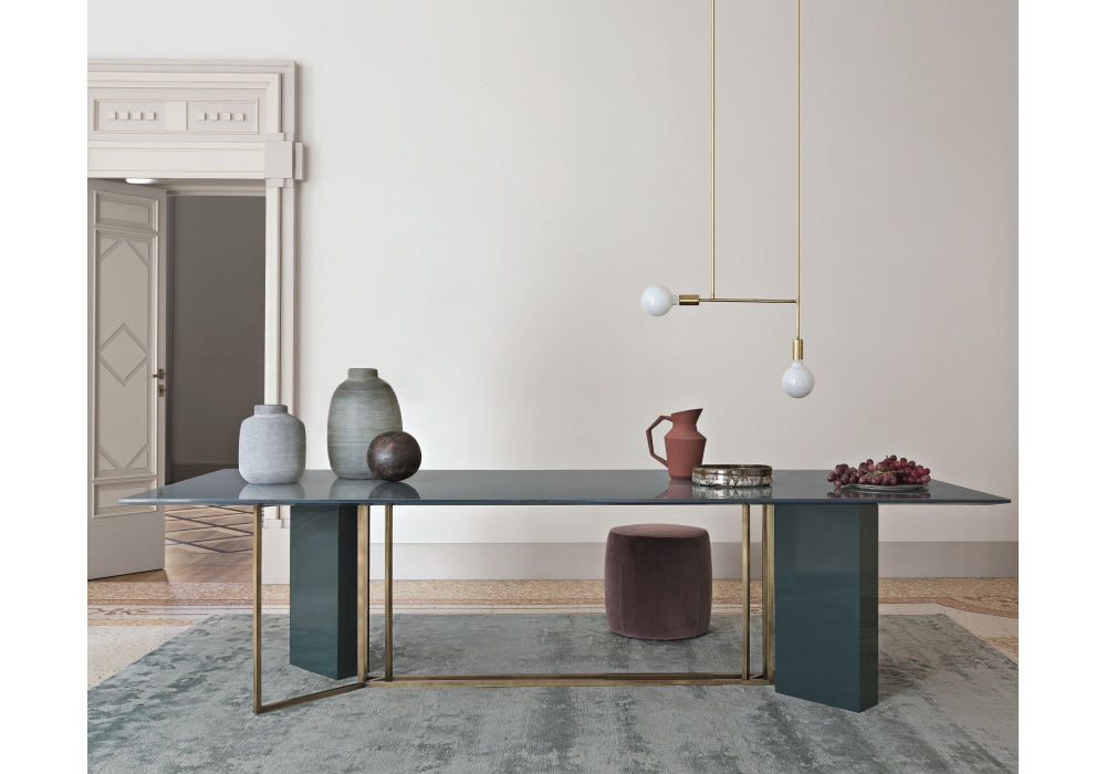 Plinto Y2W designed by Andrea Parisio for Meridiani is a dining table that has a base composed of a metal frame and a one-piece available in matt or glossy lacquer, marble or wood. Table top is realized in different sizes and shapes and it made of wood, marble or lacquered in matt or glossy finish.