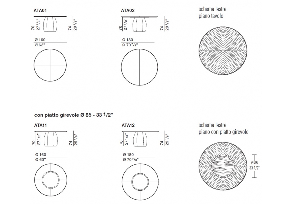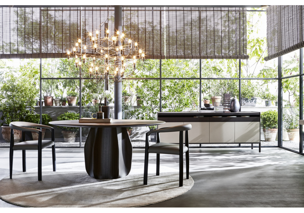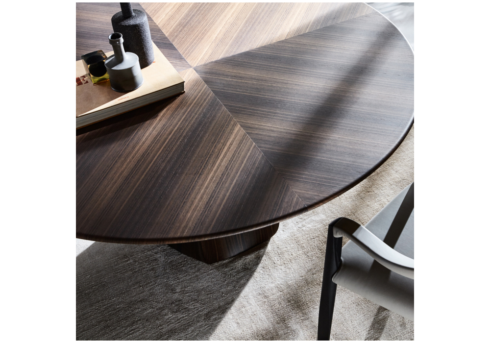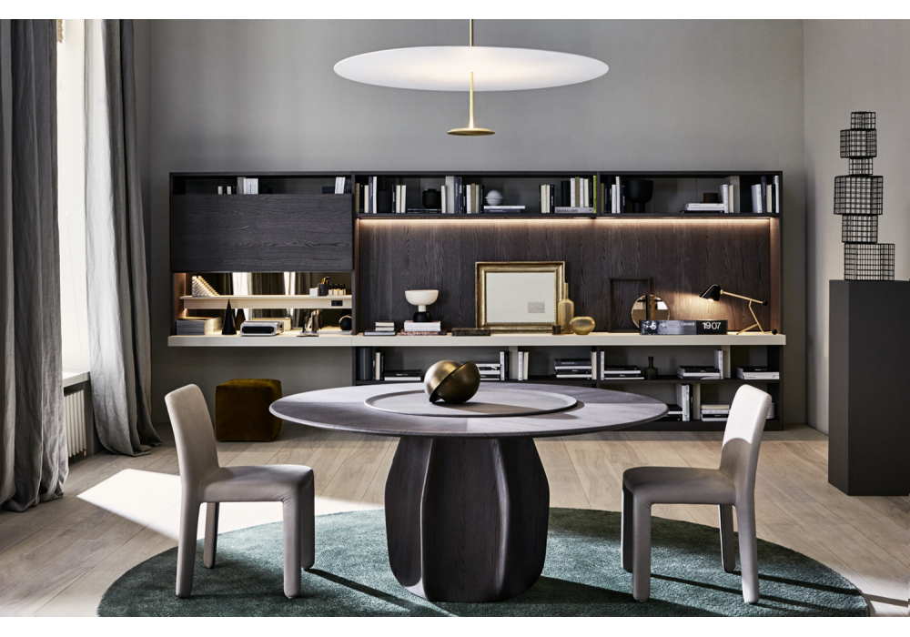 Asterias designed by Patricia Urquiola for Molteni&C is a collection of tables with a central base with six shaped faces, made in the same finishes as the top. The tables are available with or without a turntable. The turntable has the same finish as the table.