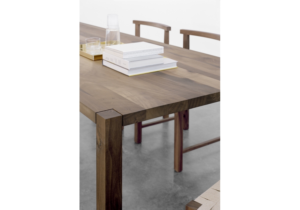 TA19 Sloane designed by Philipp Mainzer for E15 is a table in solid wood. Sloane has the square legs that intersect with the slim tabletop and the supporting structure is incorporated into the tabletop. Available in 5 finishes and more dimensions.