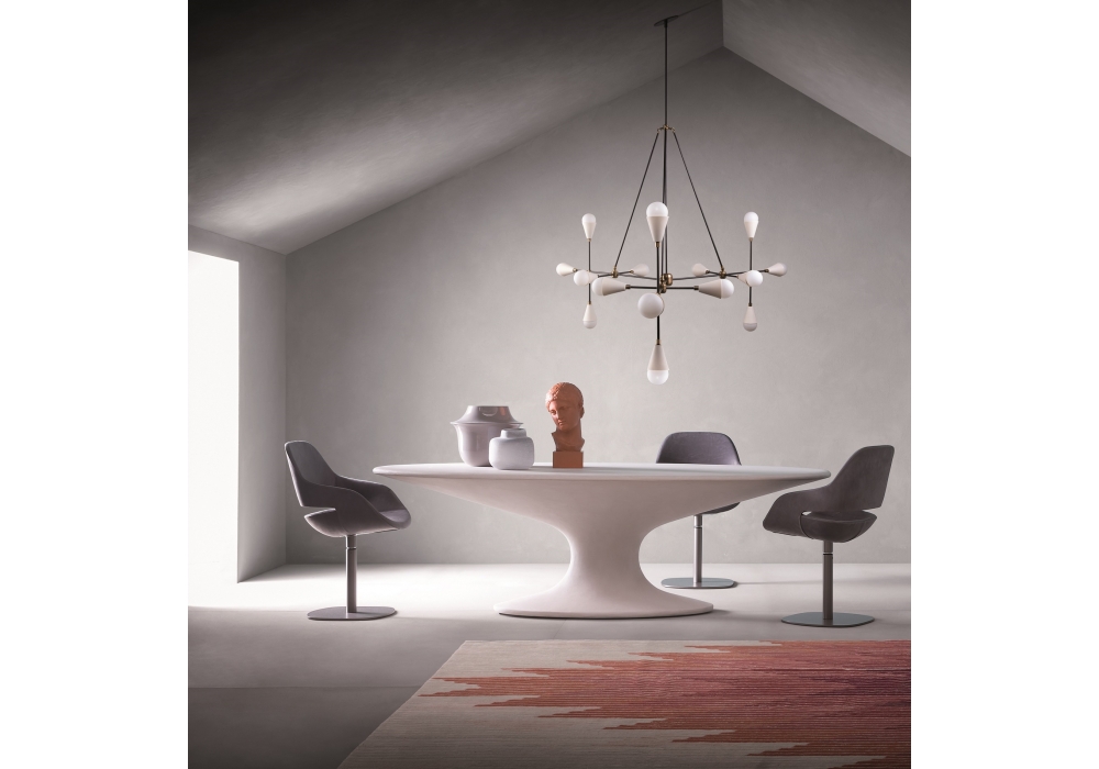 2574 Fenice designed by Piero Bottoni for Zanotta is a table with frame in Polimex®, covered with acryl finish cement with protective titanium dioxide nanotech stain-resistant treatment, in the shade of grey. Numbered piece.