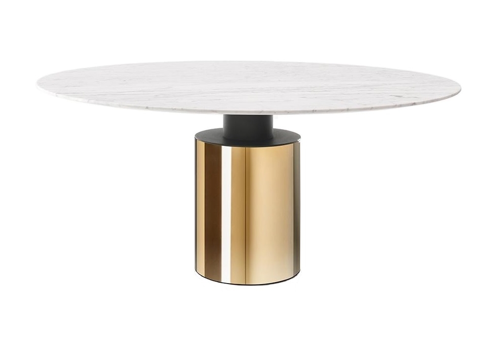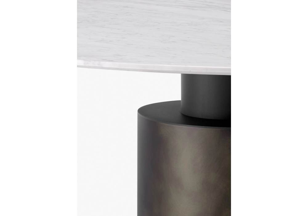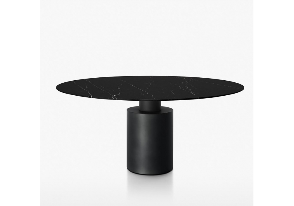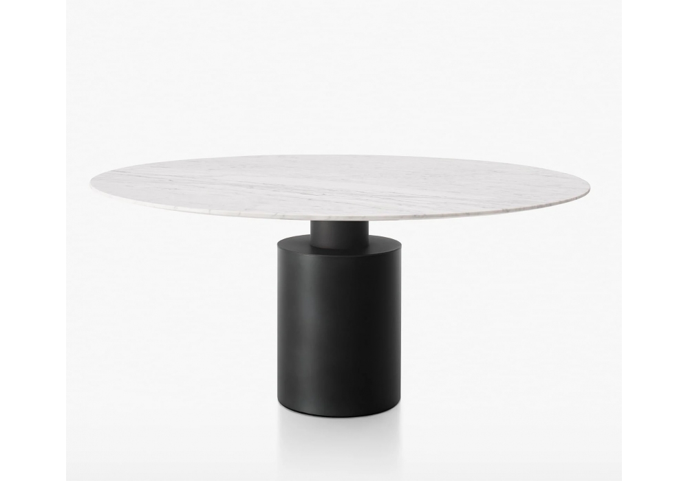 Creso designed by Lella & Massimo Vignelli for Acerbis is a beautiful marble table with metal base of large diameter with different finishes. Metal capital micaceous grey. The top is screwed to the capitel through stainless steel discs that are not visibile with the marble tops.