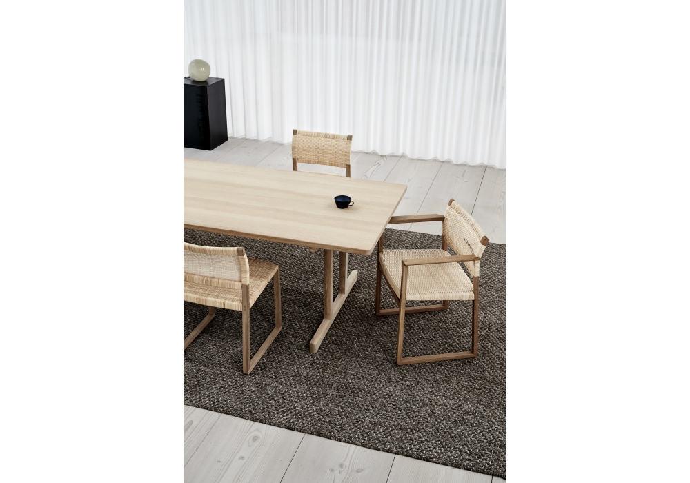 BM84 Mogensen designed by Børge Mogensen for Fredericia is a rectangular table with top and structure in solid oak wood. Leg mounted with exposed brass screw.