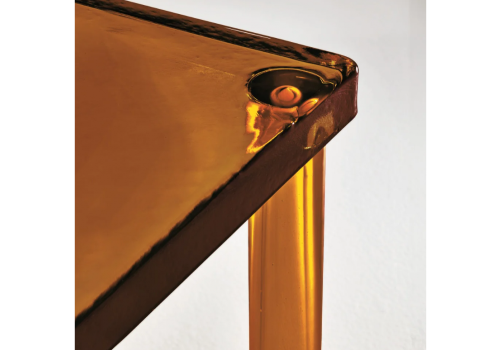 Nesting designed by Ronan & Erwan Bouroullec for Glas Italia is a table made entirely of Murano glass. The cylindrical legs are made of blown glass and are fixed to the top by means of stainless steel plates screwed together.