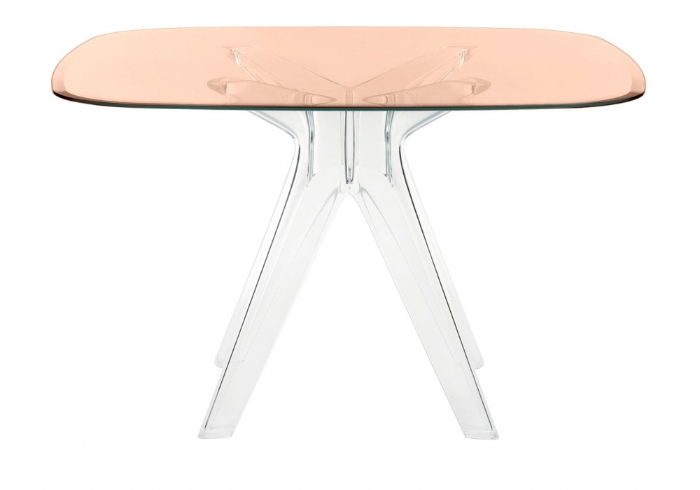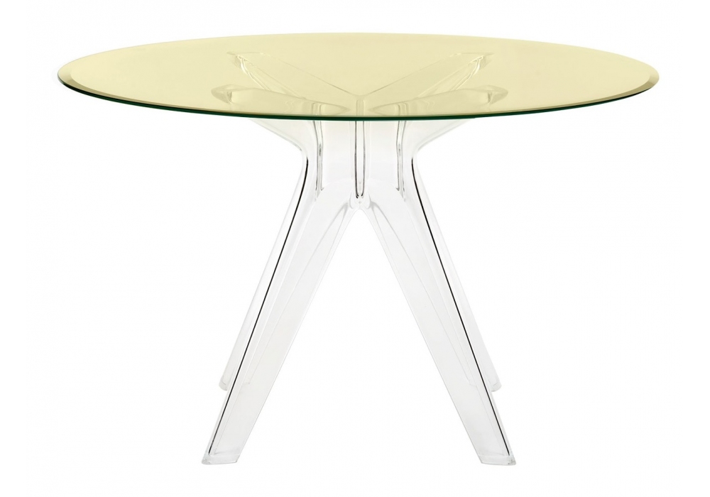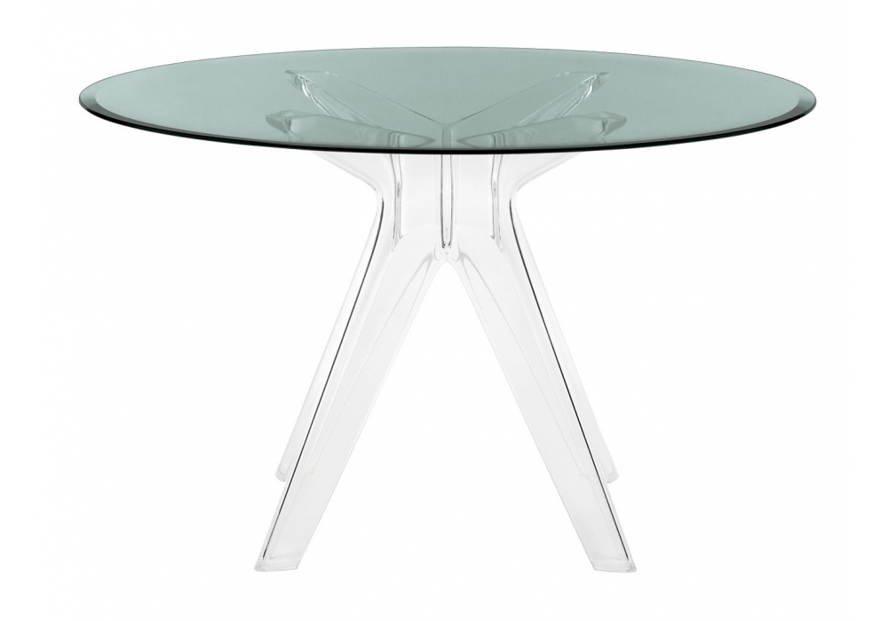 Sir Gio designed by Philippe Starck for Kartell is a table with transparent thermoplastic technopolymer structure and stratified glass top.