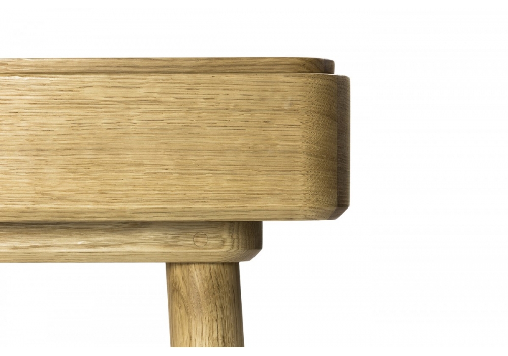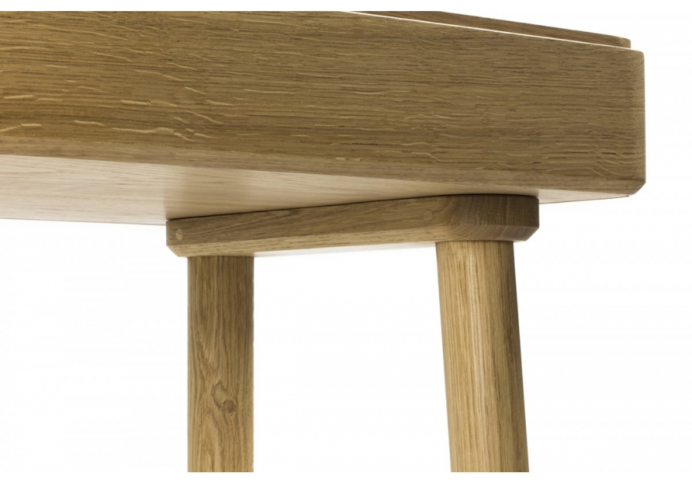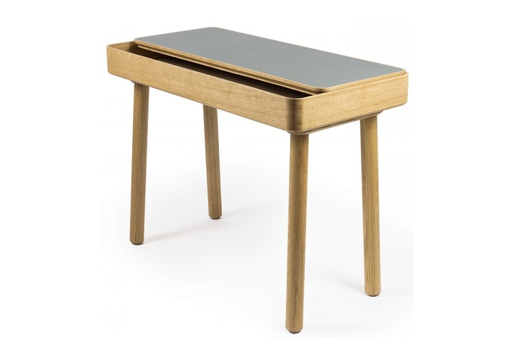 Avio designed by Alessandro Stabile for InternoItaliano is a desk in solid oak wood characterized by a storage compartment on which it's placed a sliding top covered in grey linoleum. No hinged element: the top is completely unbuttoned.