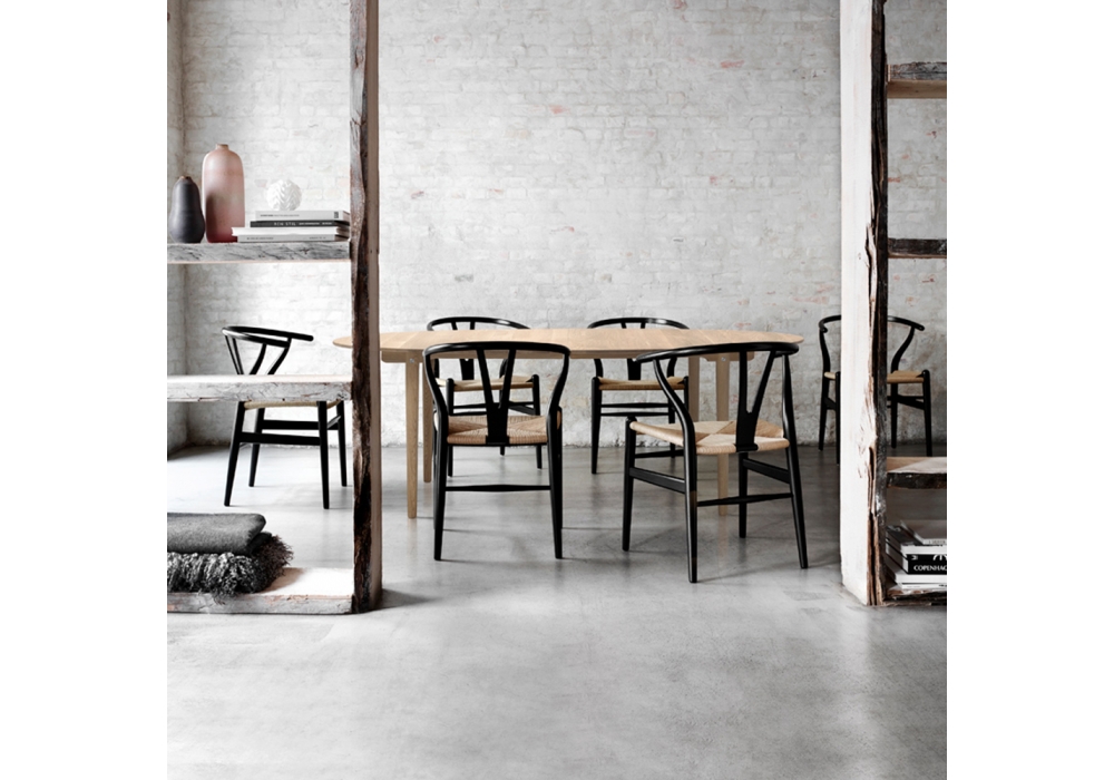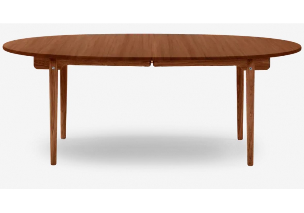 CH338 designed by Hans J. Wegner for Carl Hansen & Søn is a table with a solid walnut, beech, oak or mahogany frame in various finishes. The table is designed for two or four extensions.