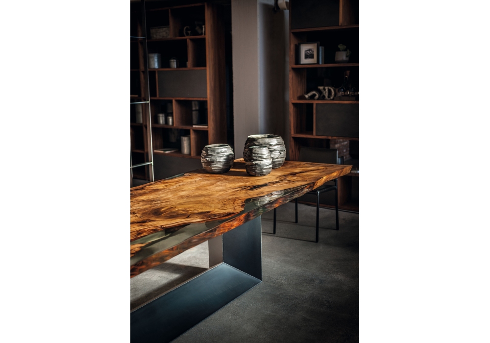 Cube Kauri designed by C.R. & S. Riva 1920 is a table made with a solid Kauri top, combined with an iron base with a sled section.