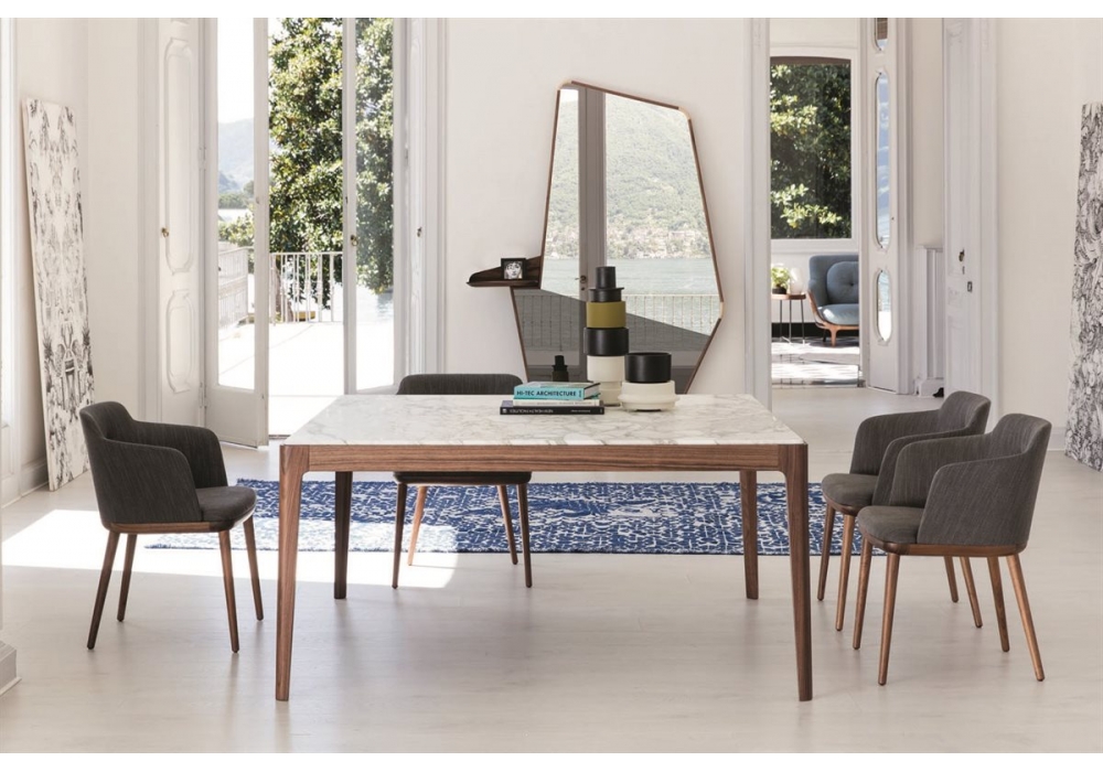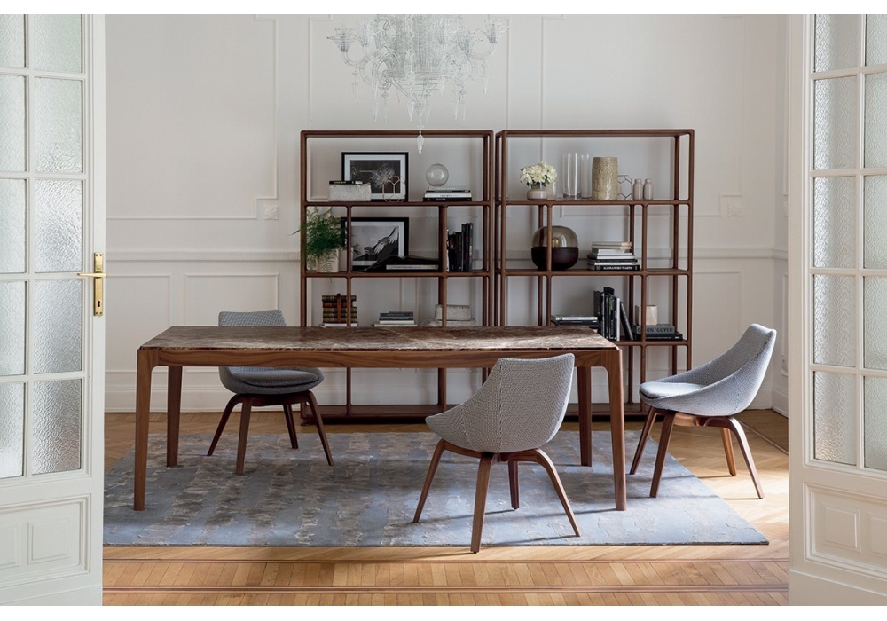 Ziggy designed by Carlo Ballabio for Porada is a table with solid canaletta walnut structure available in different finishes. Top in marble, wood or frosted glass backcoated. Available in different dimensions.