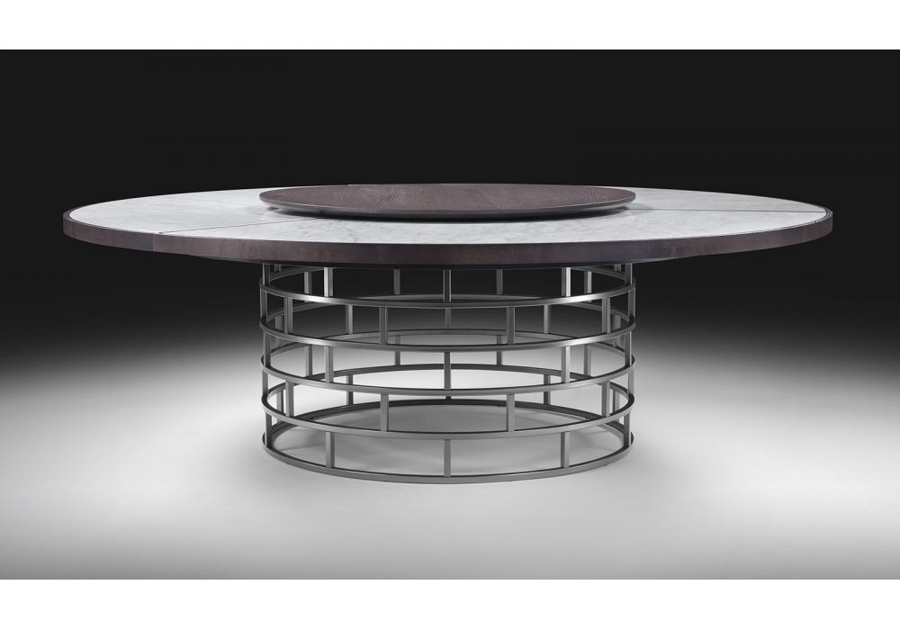 Crown designed by Roberto Lazzeroni for Flexform is a table from the Mood collection. Metal structure and ash top available in different finishes with marble inserts. Table and lazy susan available in different dimensions.
