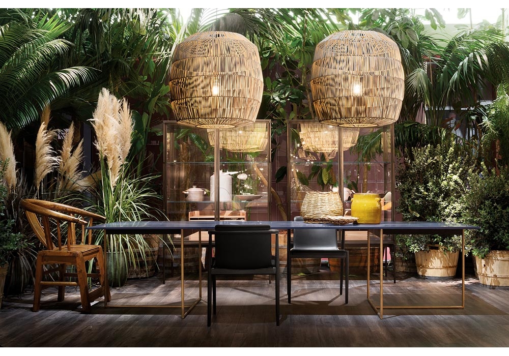 Alamo designed by David Lopez Quincoces for Lema is a table with metal structure and reconstructed marble or wooden top. Alamo has a deco spirit and a magnetic character that reinterprets the typical decorative codes of the 1940s. Available in different dimensions.