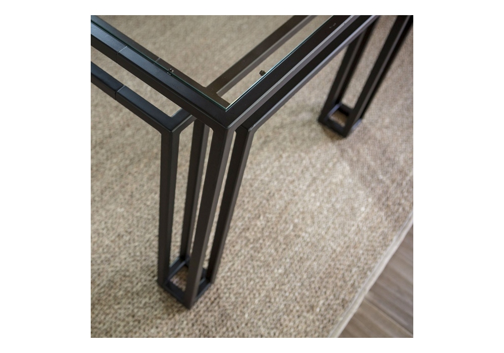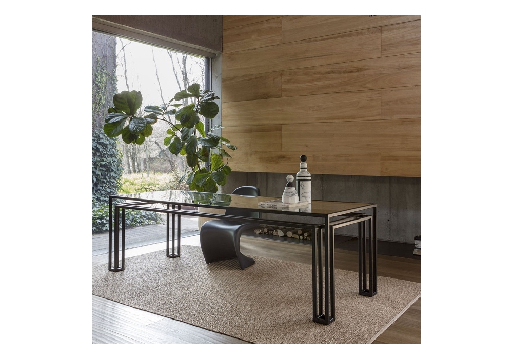 Hotline designed by Claudio Bitetti for Mogg is a table with painted metal structure and glass top. Available in 2 dimensions.
