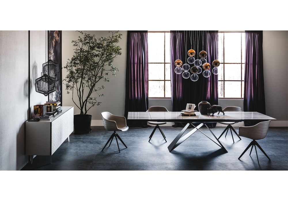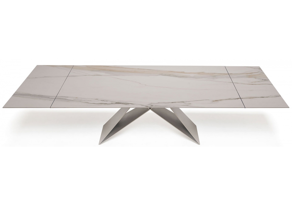Premier Keramik Drive designed by A. Lucatello & G. Cattelan for Cattelan Italia is an extendable table with base made of steel and top in different finishes of ceramic Marmi. Extensions in the same finish as the top. Available in different dimensions.