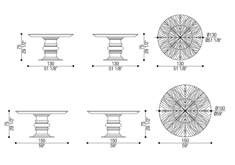 | Dimensions | Ø 130 x H 75 cm; Ø 150 x H 75 cm |