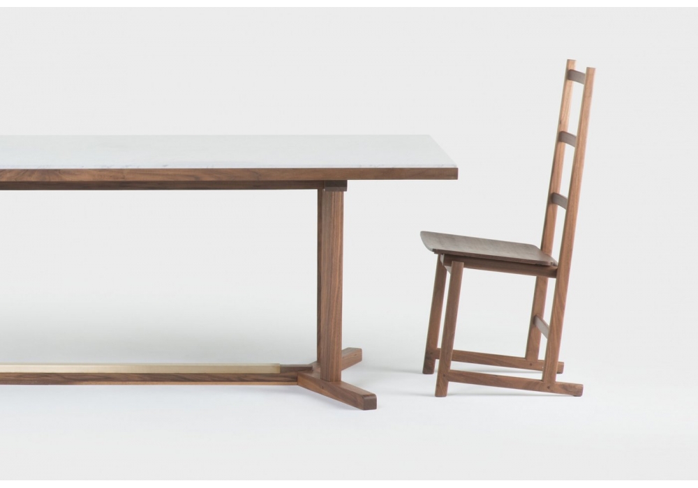 Shaker designed by Neri & Hu for De La Espada is a dining table with wooden structure available in different finishes and tabletop made of Carrara marble. Perfect to match to the chairs of the same collection. Also available in 3 dimensions.