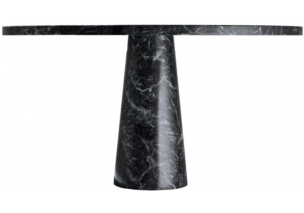 Eros designed by Angelo Mangiarotti for Agapecasa is a round table with one support. Made entirely of marble, available in the following finishes: white Carrara, black Marquinia, grey Carnico, green Alpi and Emperador Dark.