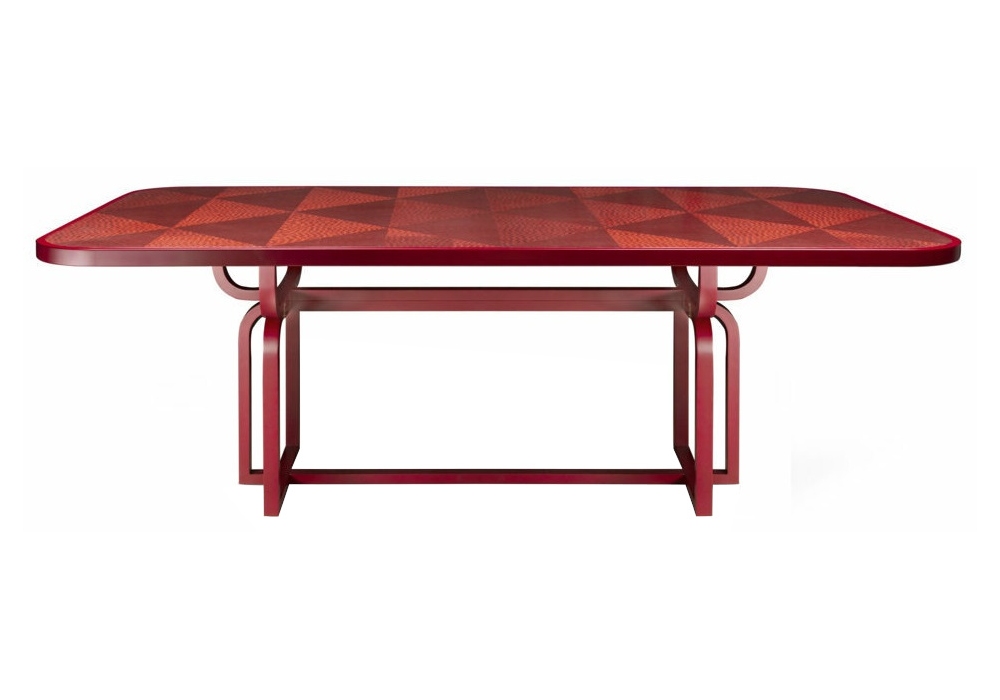 Caryllon Dining Tables designed by Cristina Celestino for Gebrüder Thonet Vienna is a table with structure in lacquered curved beech and top in inlaid wood. Available in different finishes.