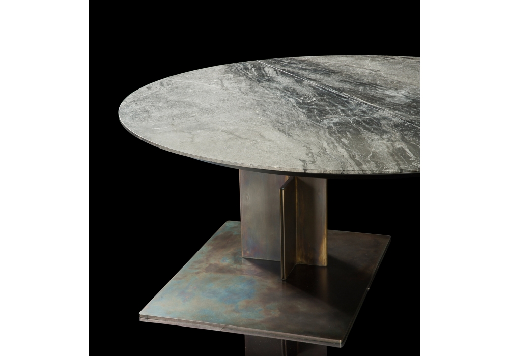 Shift designed by Massimo Castagna for Henge is a circular lounge table made with a stone top and a hand-burnished steel structure. Shift is available in different sizes and finishes.